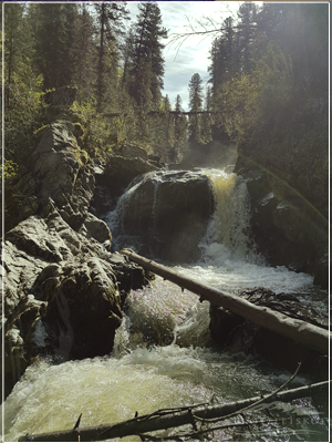 Второй водопад гораздо таинственнее, хоть и добраться к нему намного сложнее. Либо перебраться через первый водопад, либо взобраться по склону горы и прогуляться по таёжной тропе.